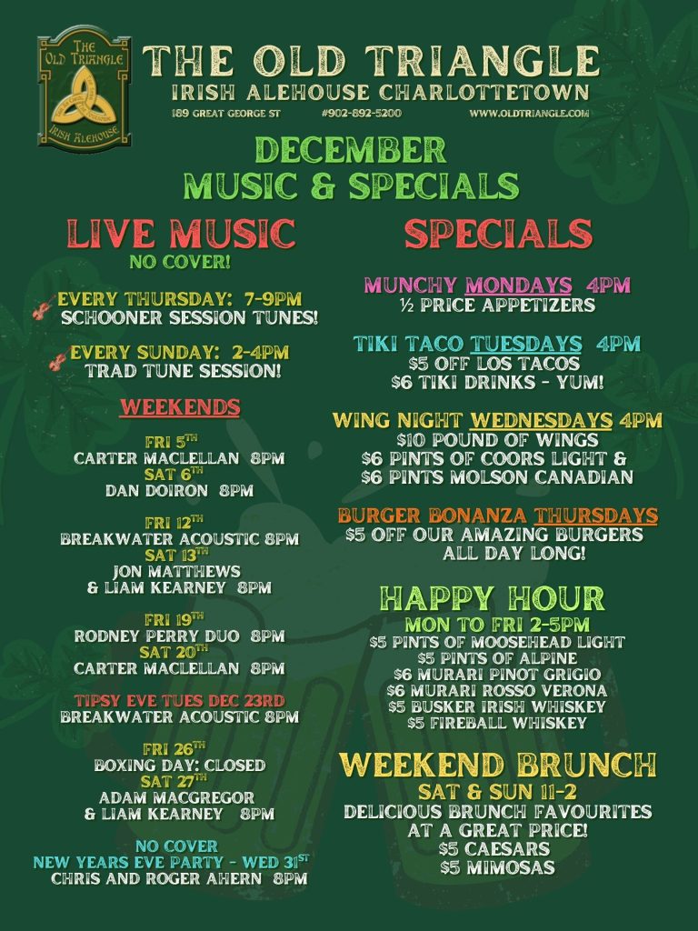 Welcome to The Old Triangle Irish Alehouse – the Celtic Heart of the Maritimes! Since our beginnings in Halifax in 2000, we have grown to include four unique local locations throughout the Maritimes. We are proud to have you join us in Charlottetown to experience the three key elements for a memorable occasion; Food for the Body, Drink for the Spirit and Music for the Soul.